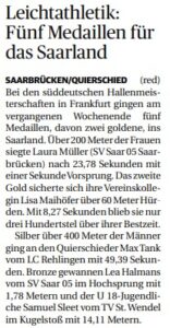 Ein Beitrag in der Saarbrücker Zeitung, Regionalausgabe, Sport regional: