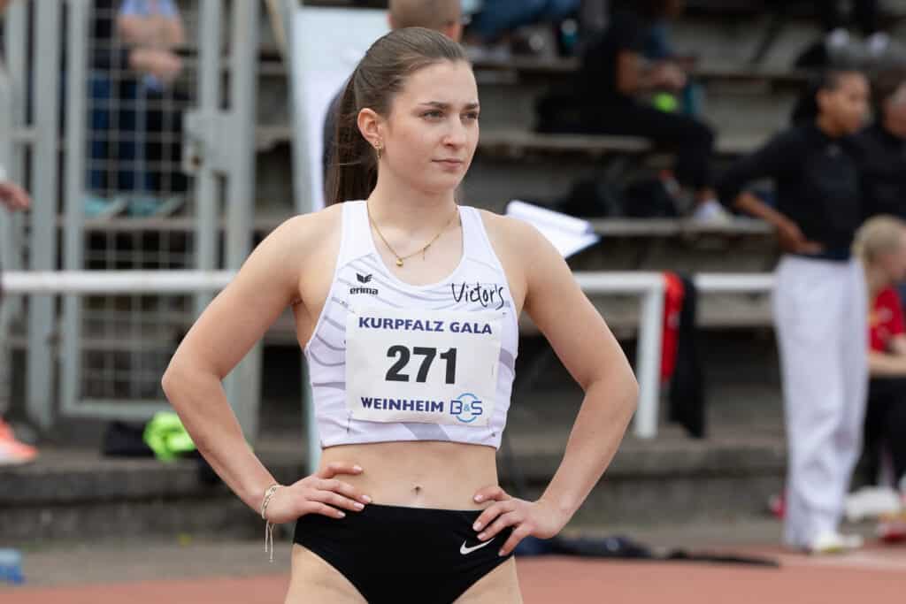 Ksenia Helios, U23 Athletin des Jahrganges 2005, zeigte sich in ihrem ersten Wettkampf bei der hochkarätig besetzten Kurpfalz Gala in Weinheim mit richtig schnellen Beinen. In ihrem Vorlauf über 100 m erzielte sie 11,80 sec und qualifizierte sich damit in einem wirklich starken Feld für den B-Endlauf. Hier steigerte sie sich dann auf sehr gute 11,73 sec und wurde Zweite. Anschließend trat sie auch über die 200 m Strecke an und erzielte hier mit sehr guten 24,49 sec eine neue pB! Sie liegt in ihrem ersten Jahr bei der U23 aktuell auf Platz 10 der Bestenliste (U23).