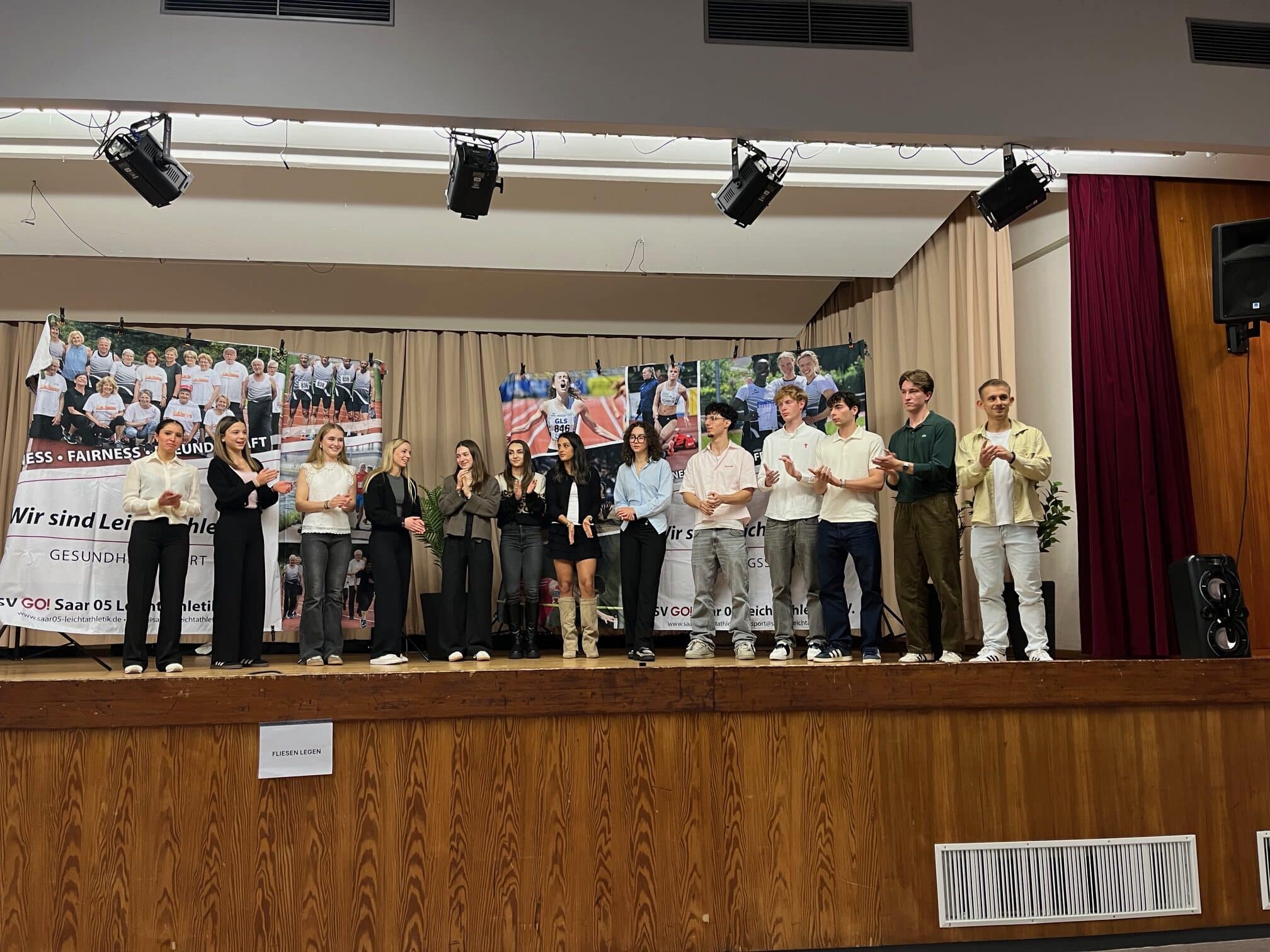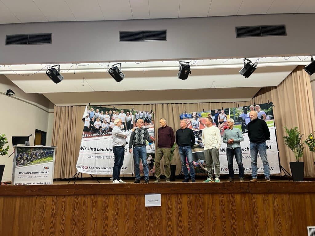 In Vertretung des Vorsitzenden Dr. Bernd Coen konnte Knut Engler berichten von den deutlich steigenden Teilnehmerzahlen bei unseren Laufveranstaltungen und den steigenden Mitgliederzahlen sowie einer nach wie vor sehr hohen Bereitschaft, sich ehrenamtlich als Helfer, TrainerIn, Im Vorstand oder anderweitig zu engagieren. Höhepunkt der Veranstaltung war aber wieder die Vorstellung der einzelnen Trainingsgruppen mit ihren Trainern sowie insbesondere der LeistungssportlerInnen, die bereits auf einer eigens für sie durchgeführten Veranstaltung zusammen mit Sponsorenvertretern geehrt worden waren. Sie alle gemeinsam auf der Bühne zu sehen und ihre zahlreichen Top-Platzierungen 2025 noch einmal revue passieren zu lassen, war für alle äußerst beeindruckend und motivierend. Aber auch den Ehrenamtlern und FreizeitsportlerInnen dankte Knut Engler, der die Veranstaltung moderierte, für ihr Engagement und lobte sie als Vorbild weit über den Verein hinaus.